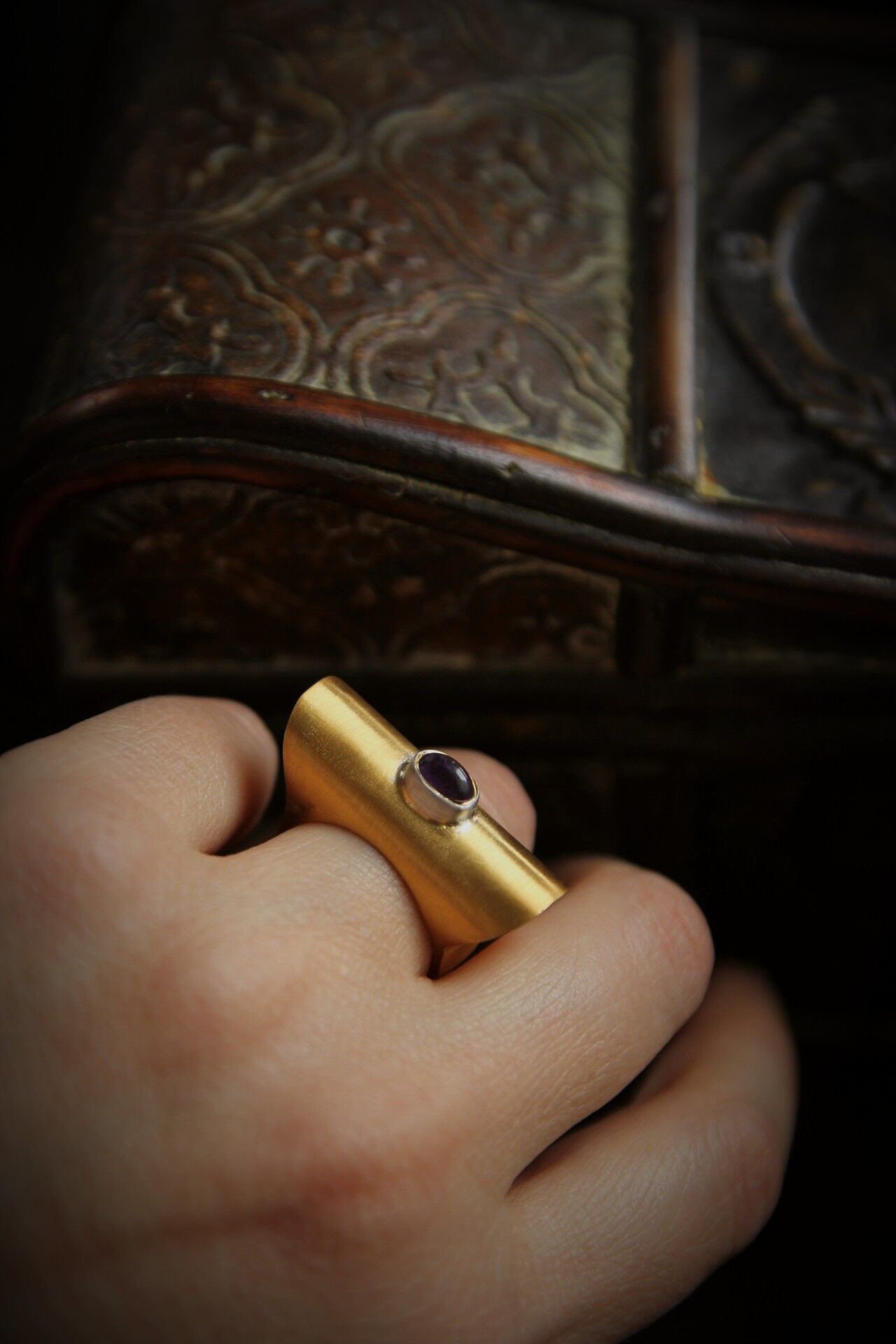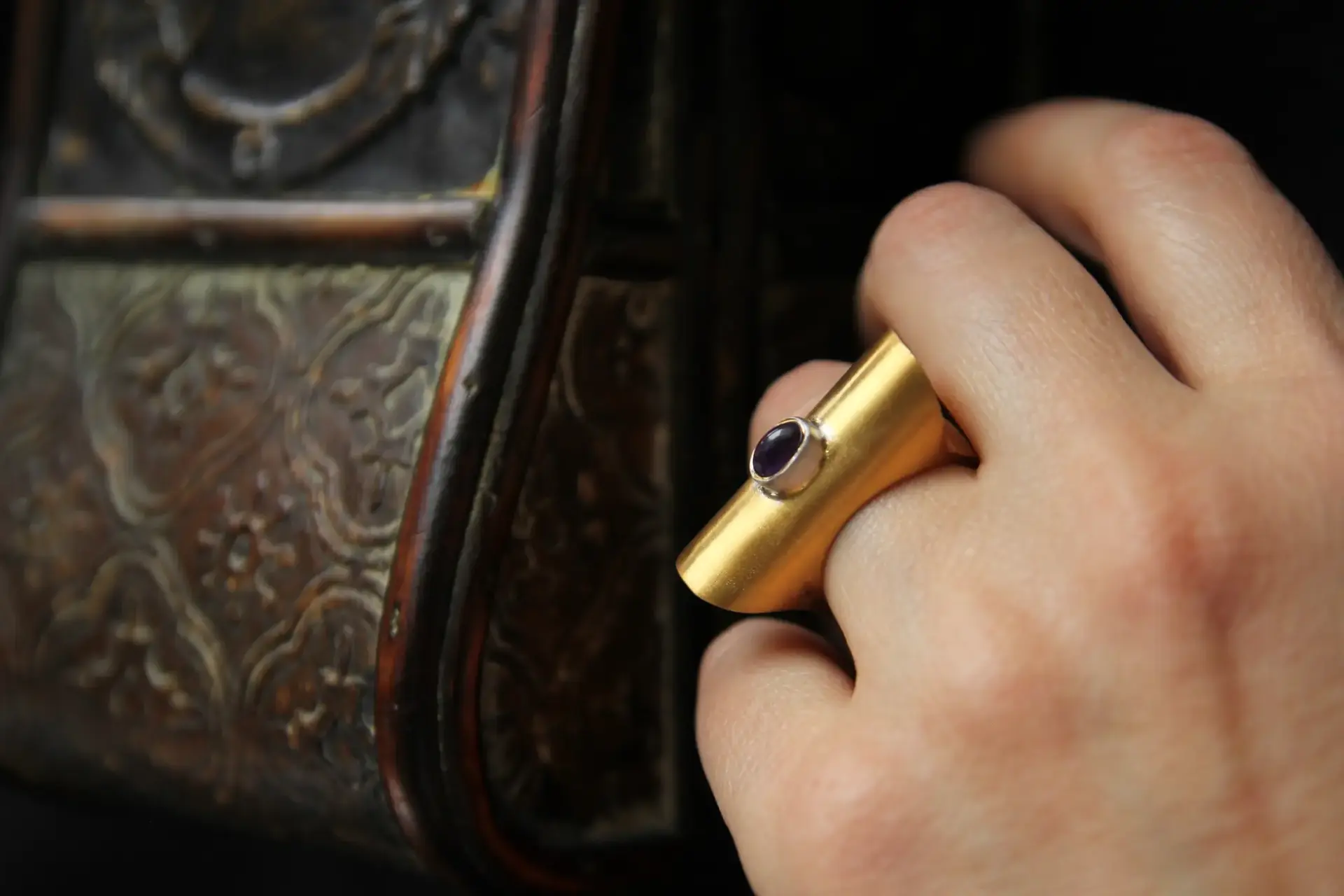 Amethyst Taşlı el yapımı gümüş yüzük, mor tonlarının büyüleyici ışıltısını zarif işçilikle buluşturur. Doğal ametistin huzur ve dengeyi simgeleyen enerjisi, özenle işlenmiş gümüş detaylarla birleşerek şık ve zamansız bir tasarım sunar. Günlük kullanıma uygun olduğu kadar özel anlarda da dikkat çekici bir tamamlayıcıdır. Her biri el işçiliğiyle üretildiği için benzersiz ve anlamlı bir takı seçeneğidir.