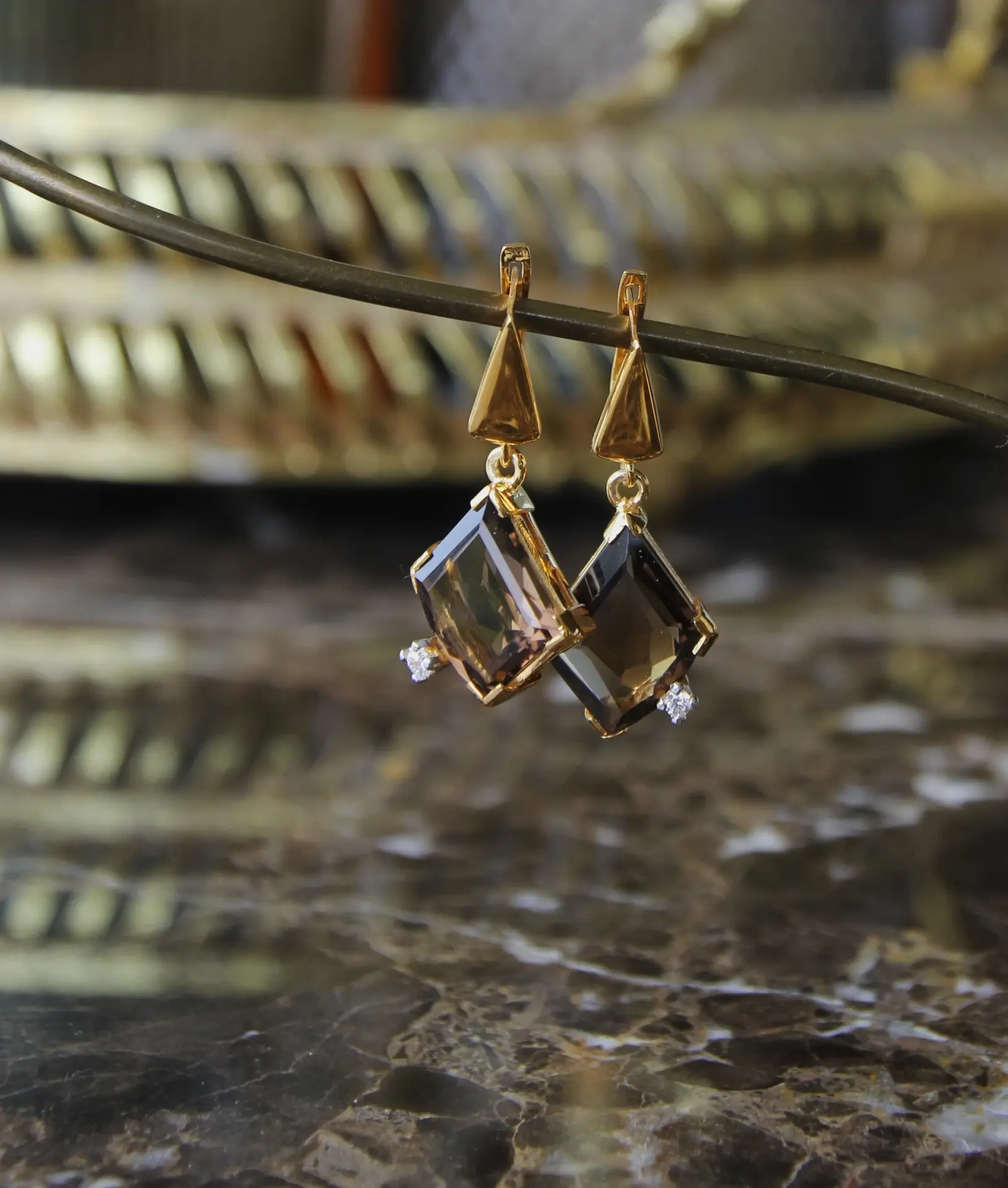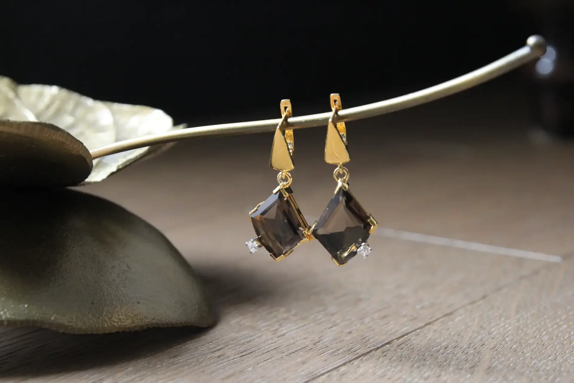 Ayrıntıları ve şıklığı sevenlere Dumanlı Kuvars (Smoky Quartz) Taşlı Gümüş küpe.