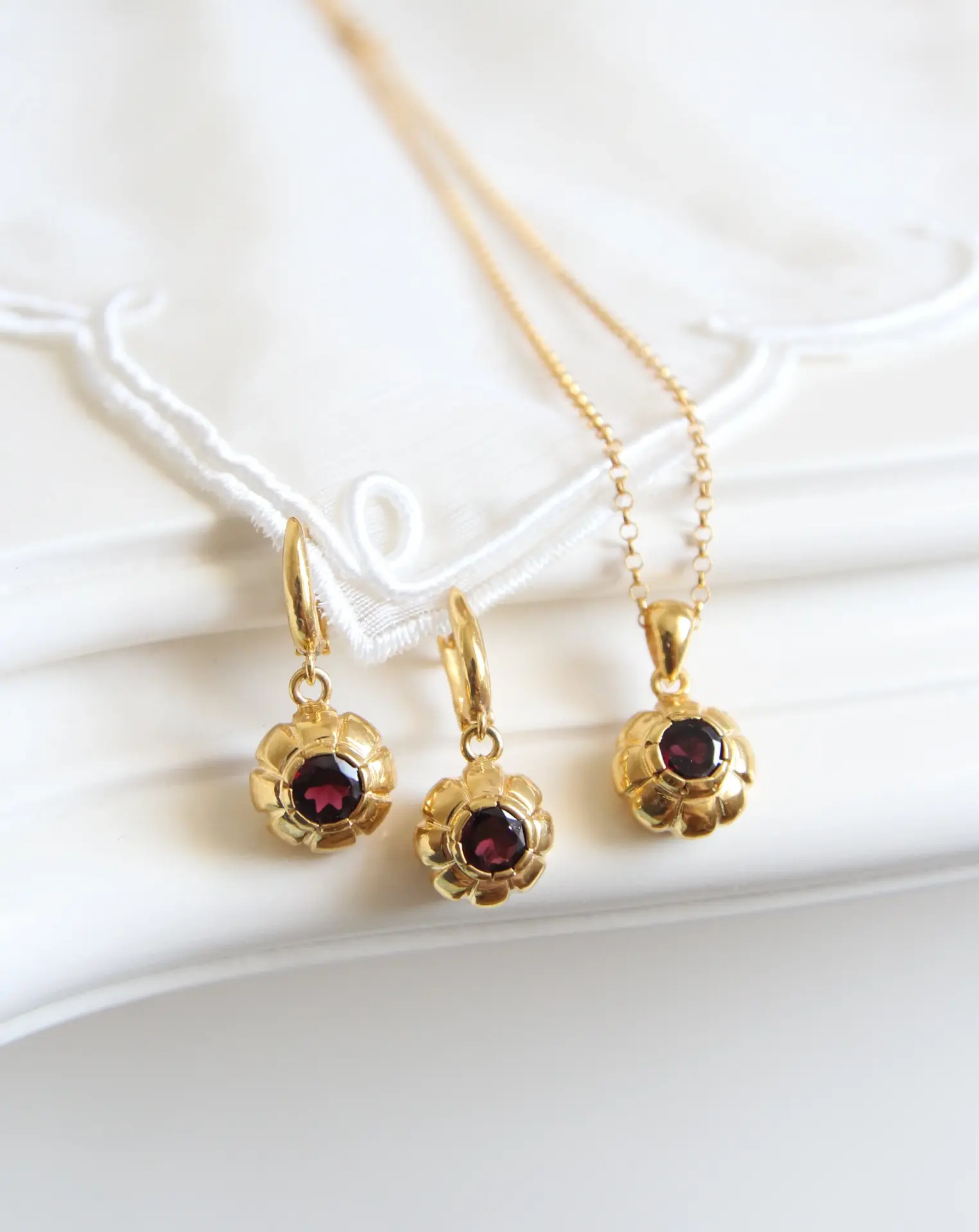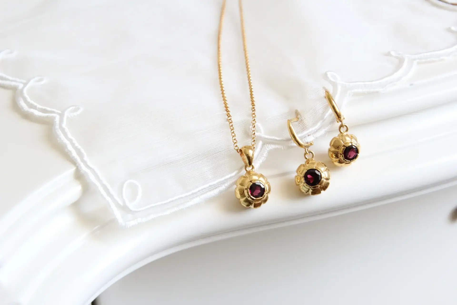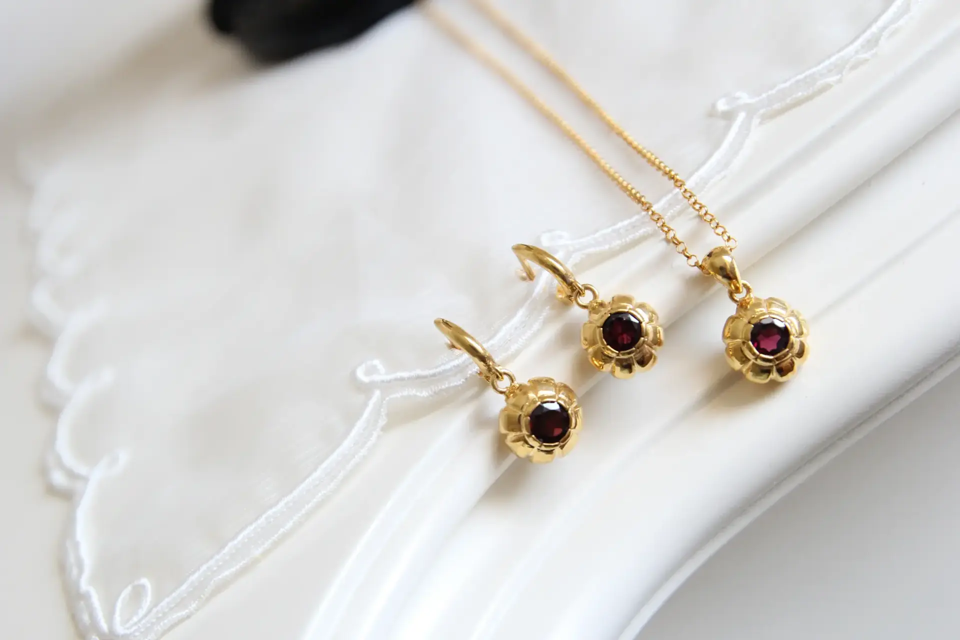 Garnet (Ruby) taşlı gümüş set, derin kırmızı tonları ve zarif el işçiliğiyle göz alıcı bir şıklık sunar. Doğal taşın güçlü ve tutkulu enerjisi, özenle işlenmiş gümüş detaylarla birleşerek zamansız bir tasarım oluşturur. Kolye ve küpeden oluşan bu özel set, hem günlük kombinlere sofistike bir dokunuş katar hem de özel günlerde etkileyici bir stil tamamlayıcısı olur. El yapımı olması sayesinde her parça benzersizdir ve anlamlı bir hediye alternatifi sunar.